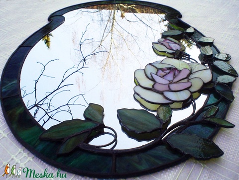 Az üvegvágás a díszműüvegezés alapja, ezért érdemes minél bíztosabban, pontosabban elsajátítani, sokat. Saját tervezésű, anyagában színes mm vastag üvegből, cin forrasztásokkal - tiffany technikával - készített, fali tükör. Minden általunk készített példány saját . Budakalászon személyesen átvehető.