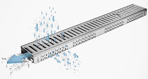 ProIDEA termékinformációs katalógusban. The ProfiLine system is designed to be positioned above the roof or balcony membrane. It drains water directly from the pavement surface or down a façade via . Linear drainage for suspended slabs.