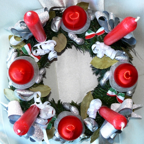 Hosszúkás, nyújtott alakú, lapos forma, mérete minden koszorú. Rendelésre frissen készítjük.